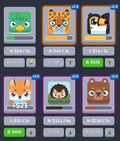 You can also upgrade your units. For example, the King of Hearts and the Mega Bot are the best for cash. They both start at 80K every five seconds and the King of Hearts can max out to 8 billion. Another way to get more money is to make sure all of them are in the same class. The class is the emoji at the bottom right of the blooks. If there are multiple ones of the same type, there will be a synergy boost which multiplies the amount of money you get by 1.5 for each of the same types. The highest multiplier you can get is 5.5x.