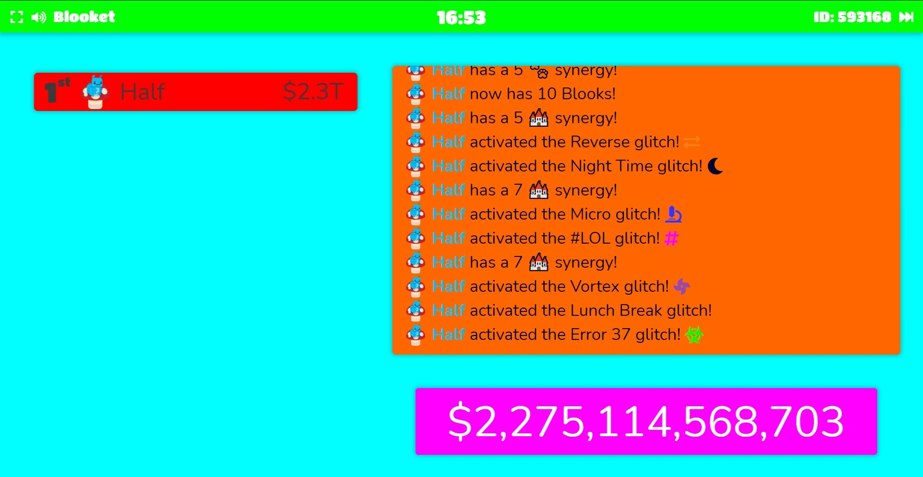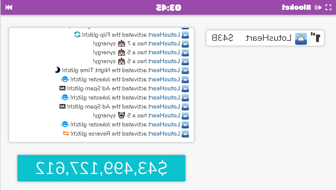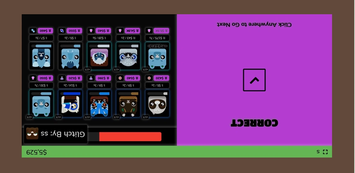 The Flip Glitch will make every person's screen (besides the player who set it off) upside down, making it hard to read what's on the screen. Your factory blooks and questions will also be turned upside down, making them significantly more difficult to see and answer. It also makes it difficult to click. |