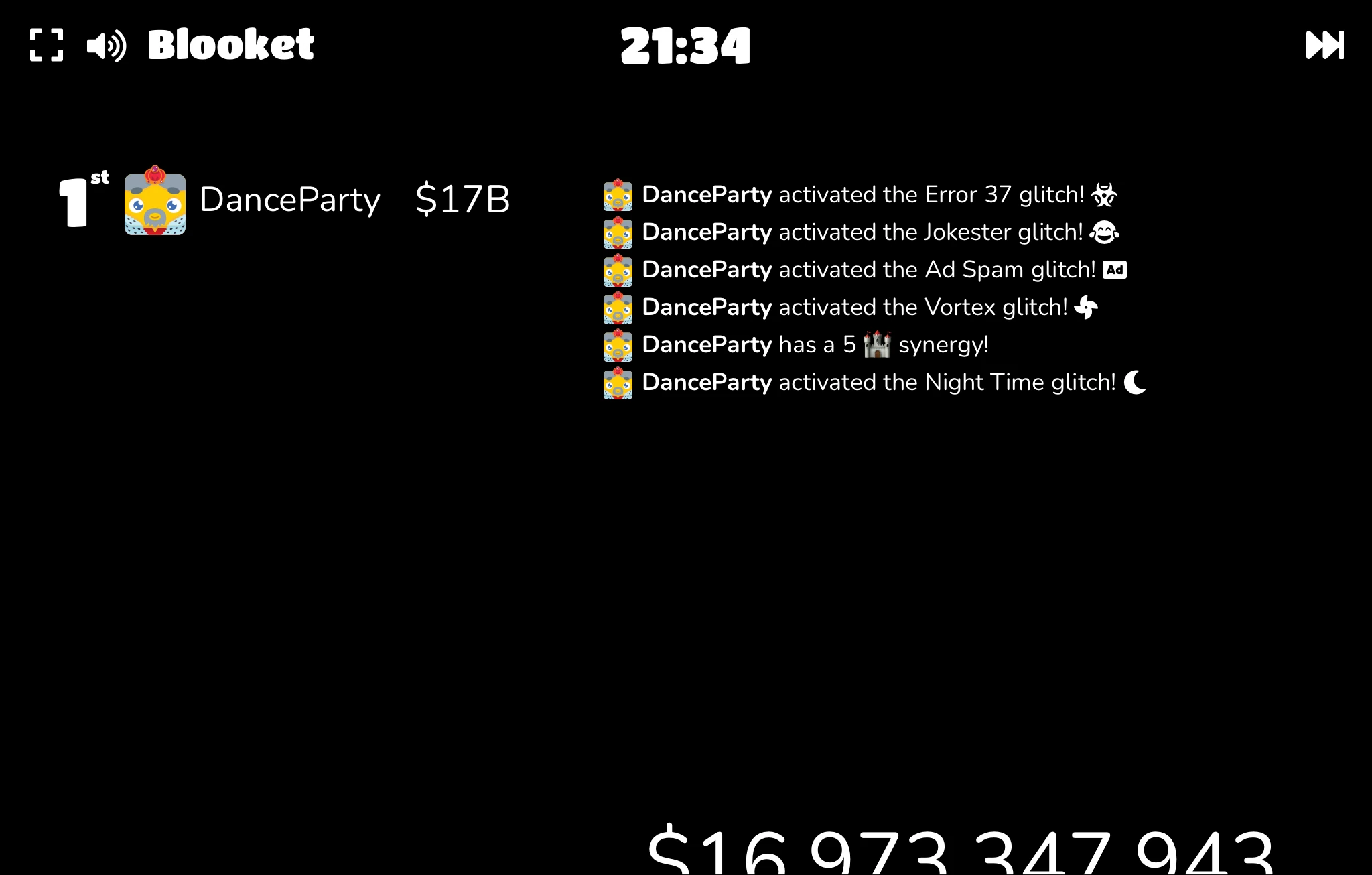 The Night Time Glitch will that can turn people's screens really dark (It won't turn your Blooks dark, only the screen). This Glitch will not affect the person who set it off. |