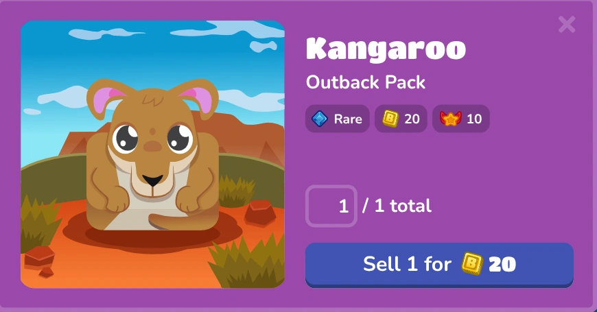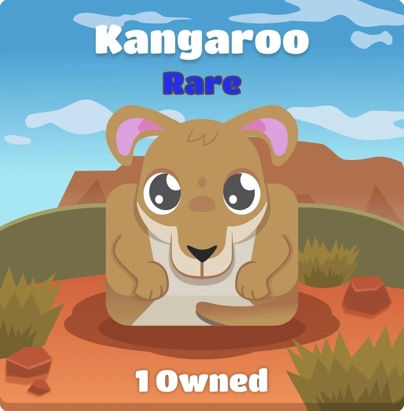 The Kangaroo is a RareBlook, meaning you do not have it by default and it must be unlocked through a pack. This specific Blook can be only obtained through the Outback Pack. The Kangaroo has a 7% drop rate, and it can be sold for only 20 tokens. It gives you a Blook score of 10 when you add it to your collection. This Blook is currently featured in only one gamemode, which is Café, where it can appear as a customer.