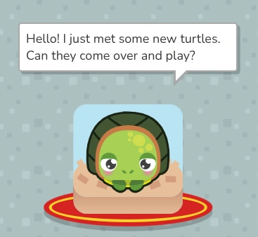 - "Hello! I just met some new turtles. Can they come over and play?"